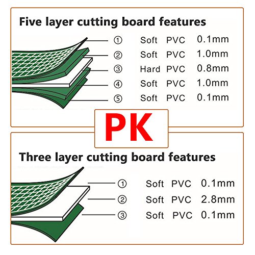The self-healing and reversible cutting mats are 3mm thick and 5 layers Cutting Mat compared to 3 layers of cutting layer, better healing performance.