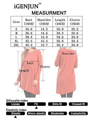 iGENJUN Women's Long Sleeve Scoop Neck Button Side Sweater Tunic DressMaterial:95% Polyester,5% Spandex. Weight:200GSM.With elasticity, feeling soft and warm.