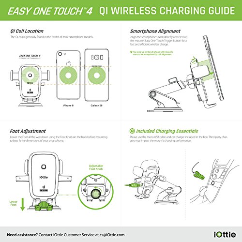The iOttie Easy One Touch 4 Qi Wireless Fast Charging Mount combines the power of Qi wireless fast charging with the agility of the Easy One Touch mounting system. Utilize the increased range and stability of the telescopic arm to find the perfect viewing position for your smartphone on either dashboard or windshield. After mount installation is complete, simply insert and remove your smartphone with just one touch. Once a Qi compatible smartphone is mounted, it will begin to automatically charge wirelessly. The Easy One Touch 4 Qi Wireless Fast Charging Mount is universally compatible with all smartphone sizes, holding your device securely so you can drive safely.UNIVERSAL MOUNTING: Universally holds all phone and case combinations from 2.3" -3.72"