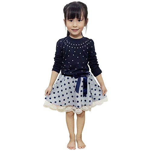 Kids Girl Cute 2PCS Diamond Clothing Set Long Sleeve Top +Dot Tutu Skirt