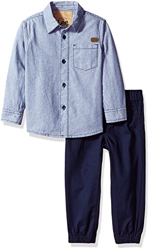 [Discount] LEE Boys' 2 Piece Long Sleeve Woven Pant Set, Navy, 3T