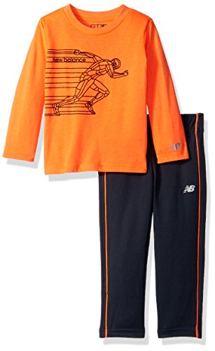 Boys New Balance active wear is designed to keep him in style on the run and comfortable at naptime. 2 piece set includes long sleeve jersey tee with micro tech pant. Athletic screen print graphics on chest, both include heat transfer reflective NB Logos.Youth boys long sleeve top and pant