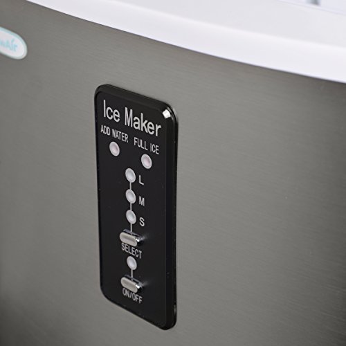 Featuring easy push button LED controls, this Newair portable ice maker is user-friendly. Simply add water, select an ice size, and press start. This ice maker begins producing the ice you need in a matter of minutes. Prepare for a party and make ice before your guests arrive. Store it in the freezer and you're sure to have all you need. The empty water reservoir indicator tells you when more water is needed, and the full basket indicator lets you know when the bin needs emptying.