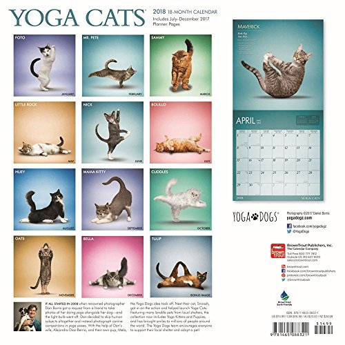 Calendar includes Holidays, moon phases, image captions with locations and other information, the highest quality photography and more!2018 Yoga Cats Wall Calendar